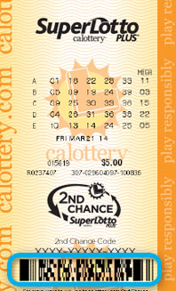 Sa SuperLotto Plus® ticket, ang natatanging barcode ay direktang nasa ibaba ng 2nd Chance Code na naka-print sa ticket. Tingnan ang larawan sa ibaba: